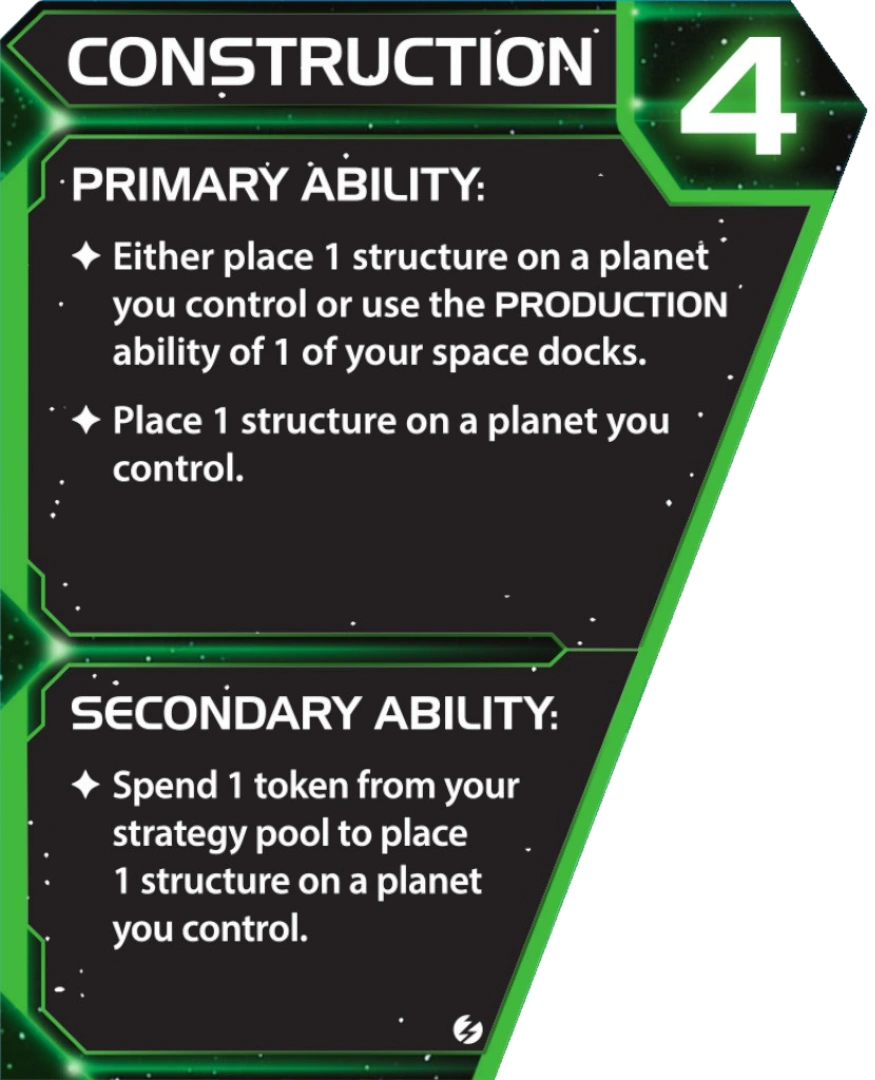 Either place 1 structure on a planet you control, or use the PRODUCTION ability of 1 of your space docks.