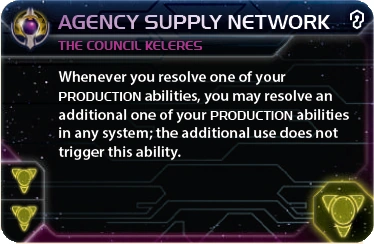 Whenever you resolve one of your PRODUCTION abilities, you may resolve an additional one of your PRODUCTION abilities in any system; the additional use does not trigger this ability.
