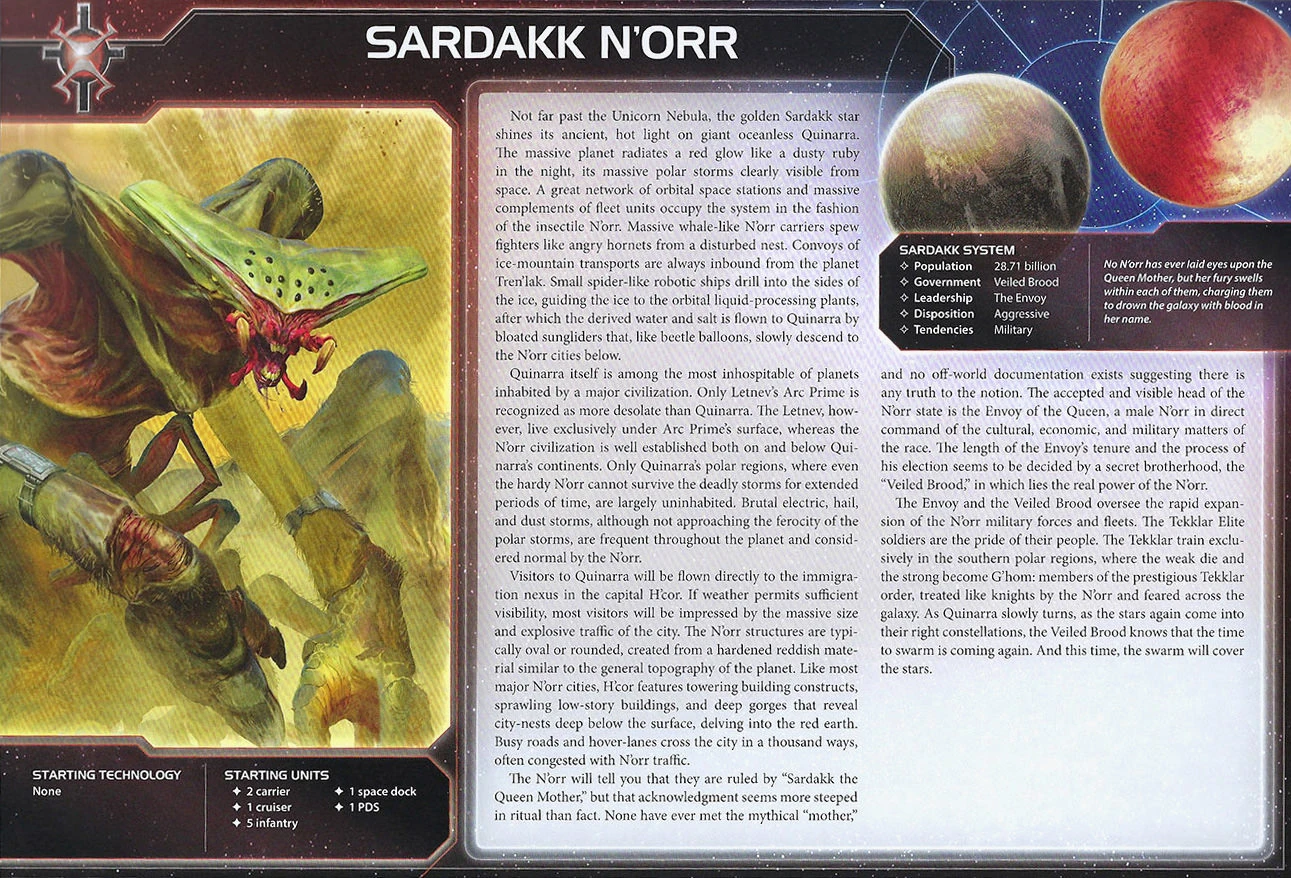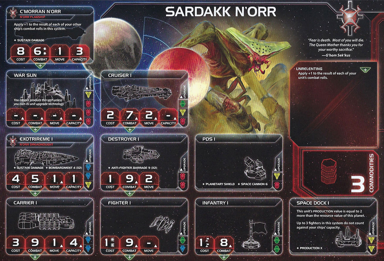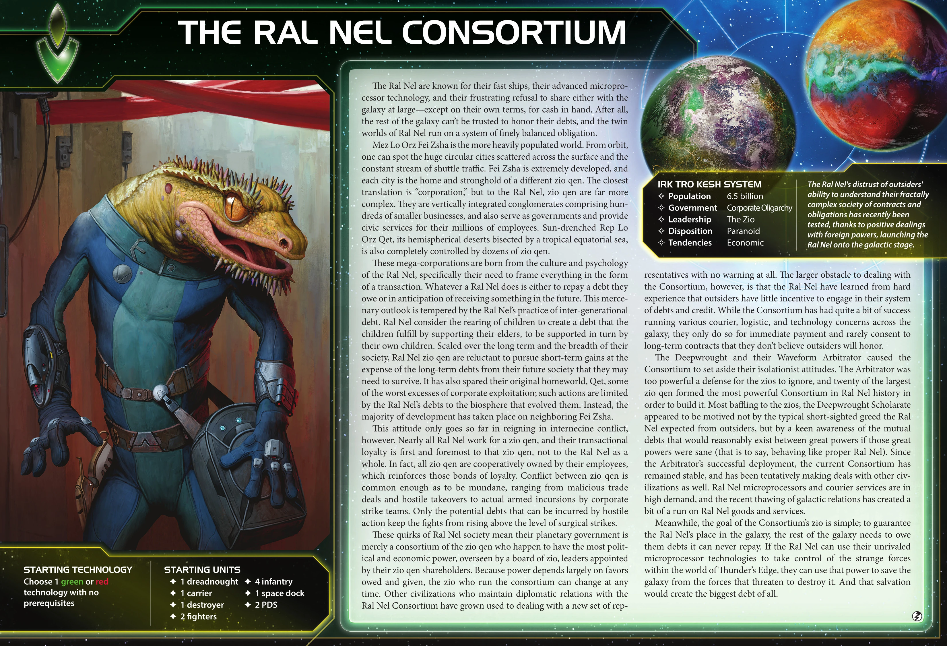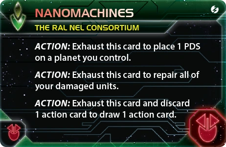 | The Ral Nel Consortium | Mez Lo Orz Pei Zsha | 2 | 1 | 4 | Choose 1 red or green technology with no prerequisites | - | 2 | 4 | Destroyer | Nanomachines | ||||
