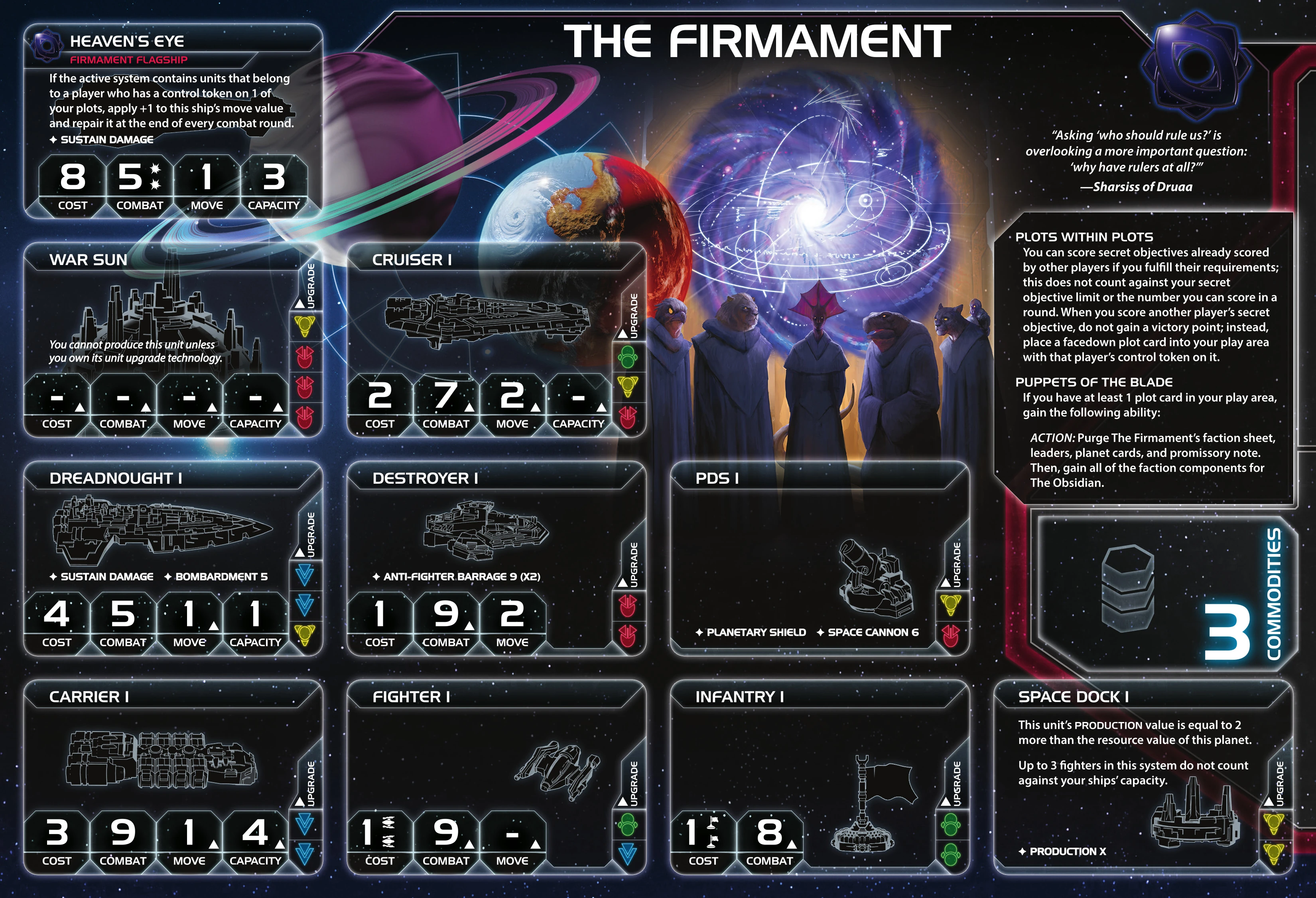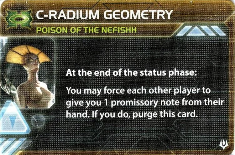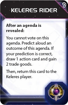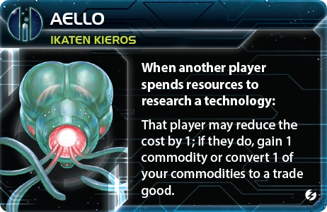 The Council Keleres | - | - | - | 2 | Any 2 non-faction technologies owned by other players | - | 2 | 2 | - | I.I.H.Q. Modernization or Executive Order |