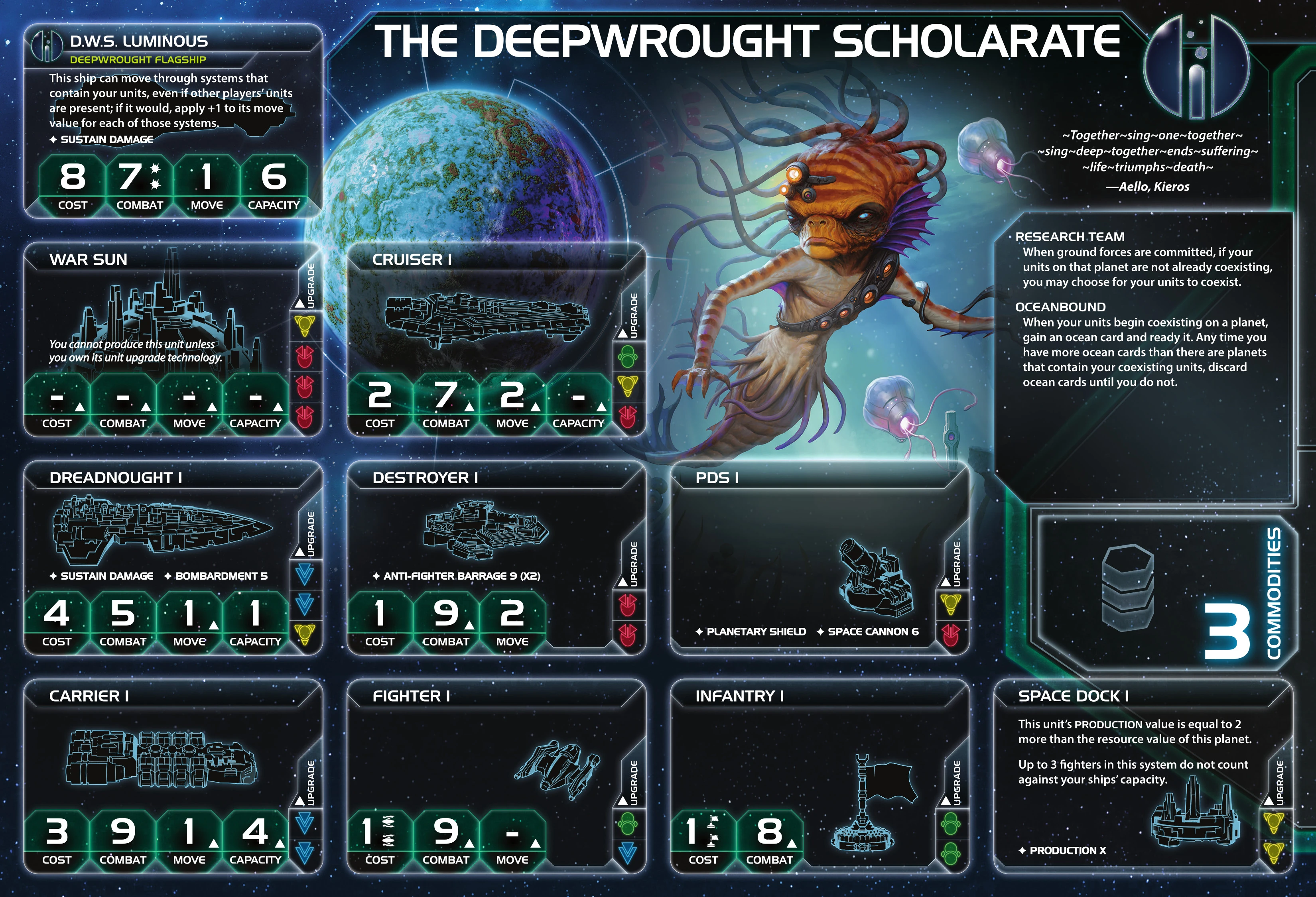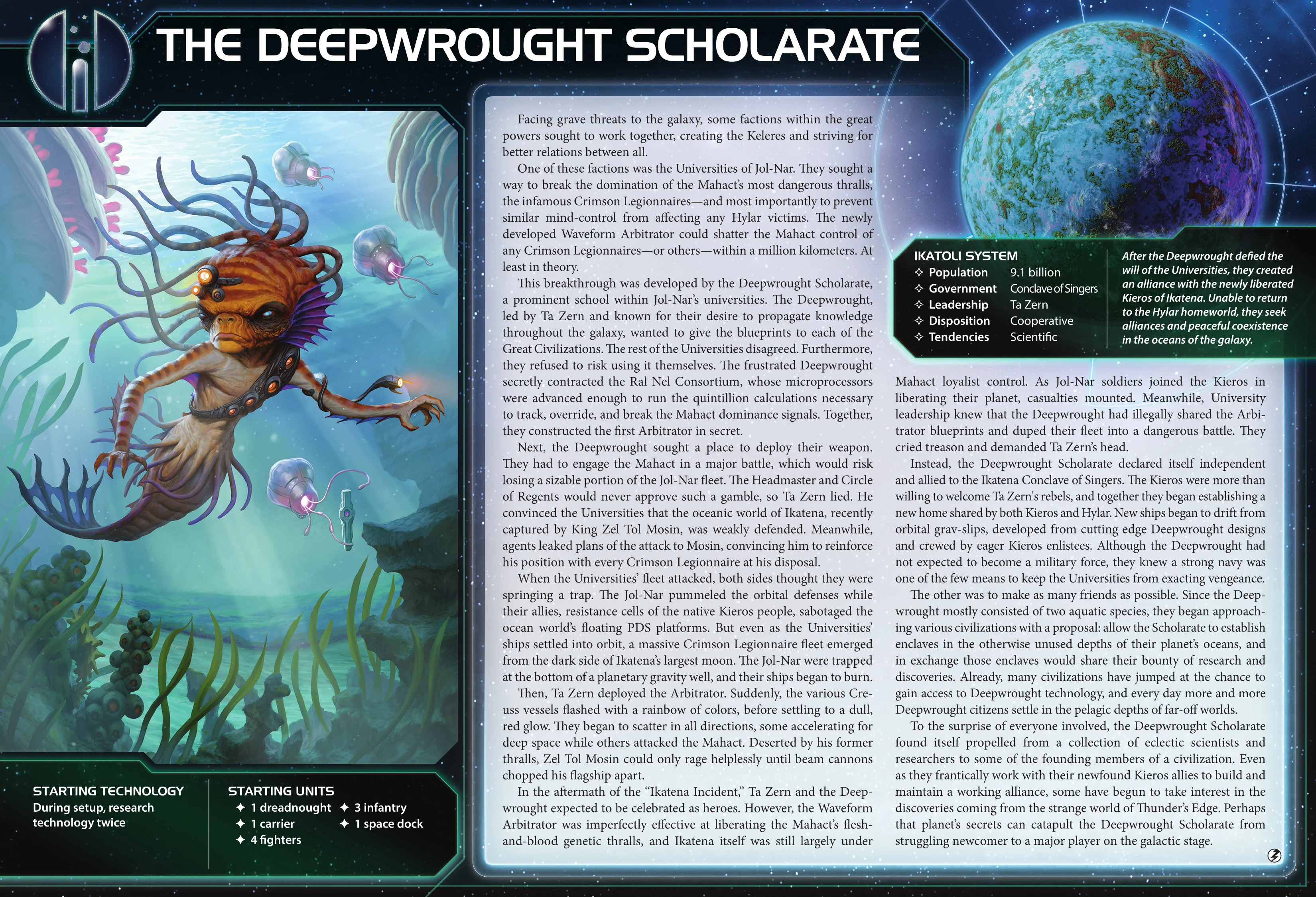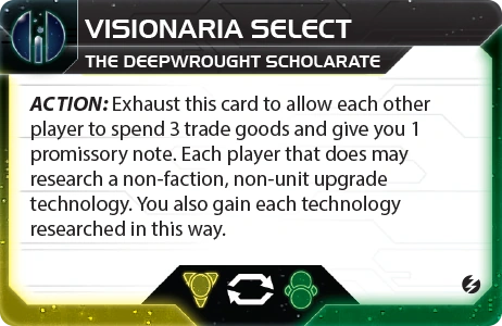 The Deepwrought Scholarate | Ikatena | 4 | 4 | 3 | During setup, research technology twice | - | 2 | 3 | - | Radical Advancement: | |||