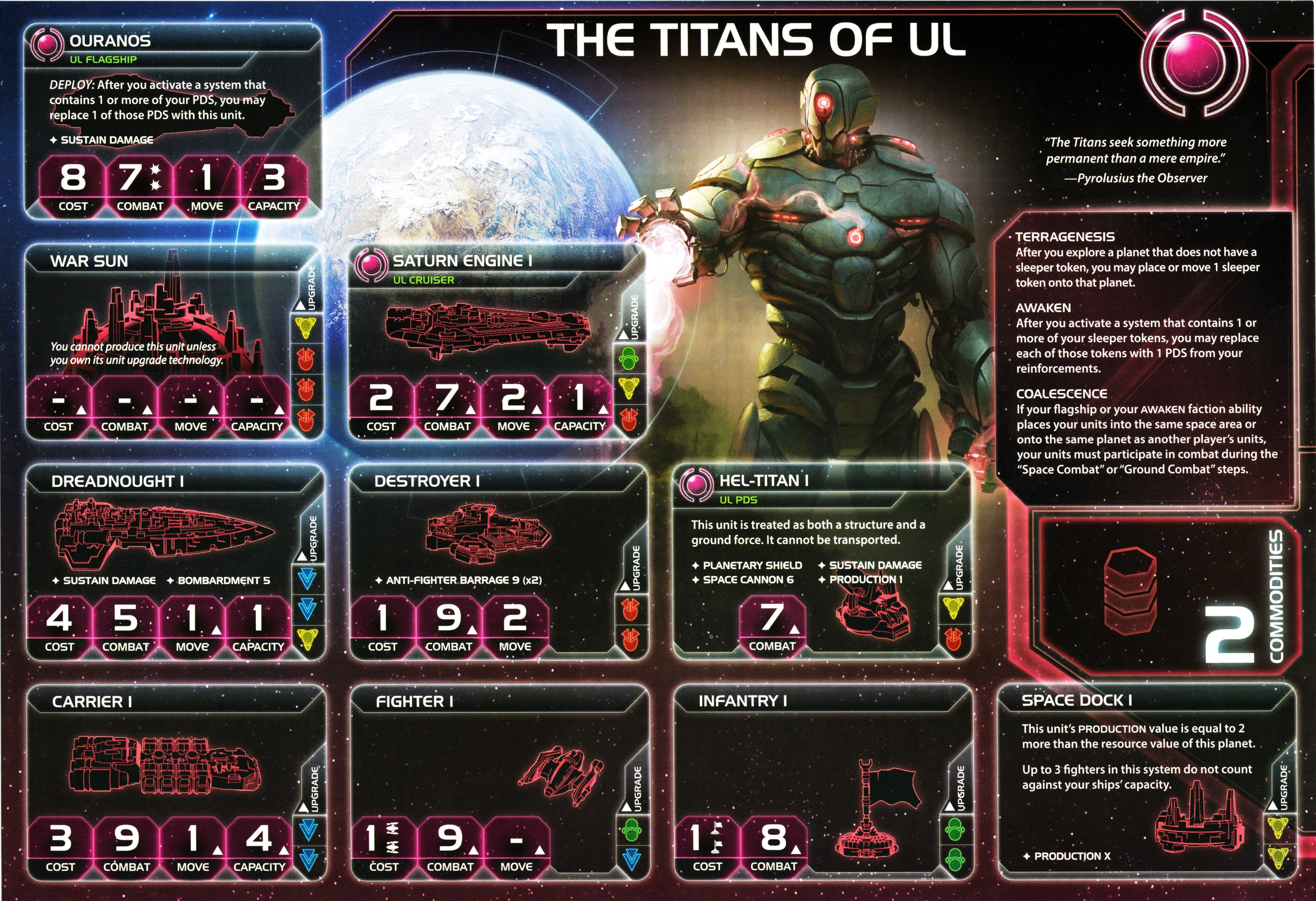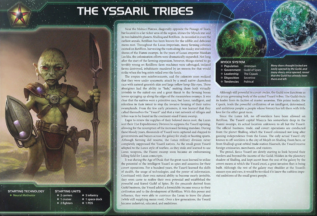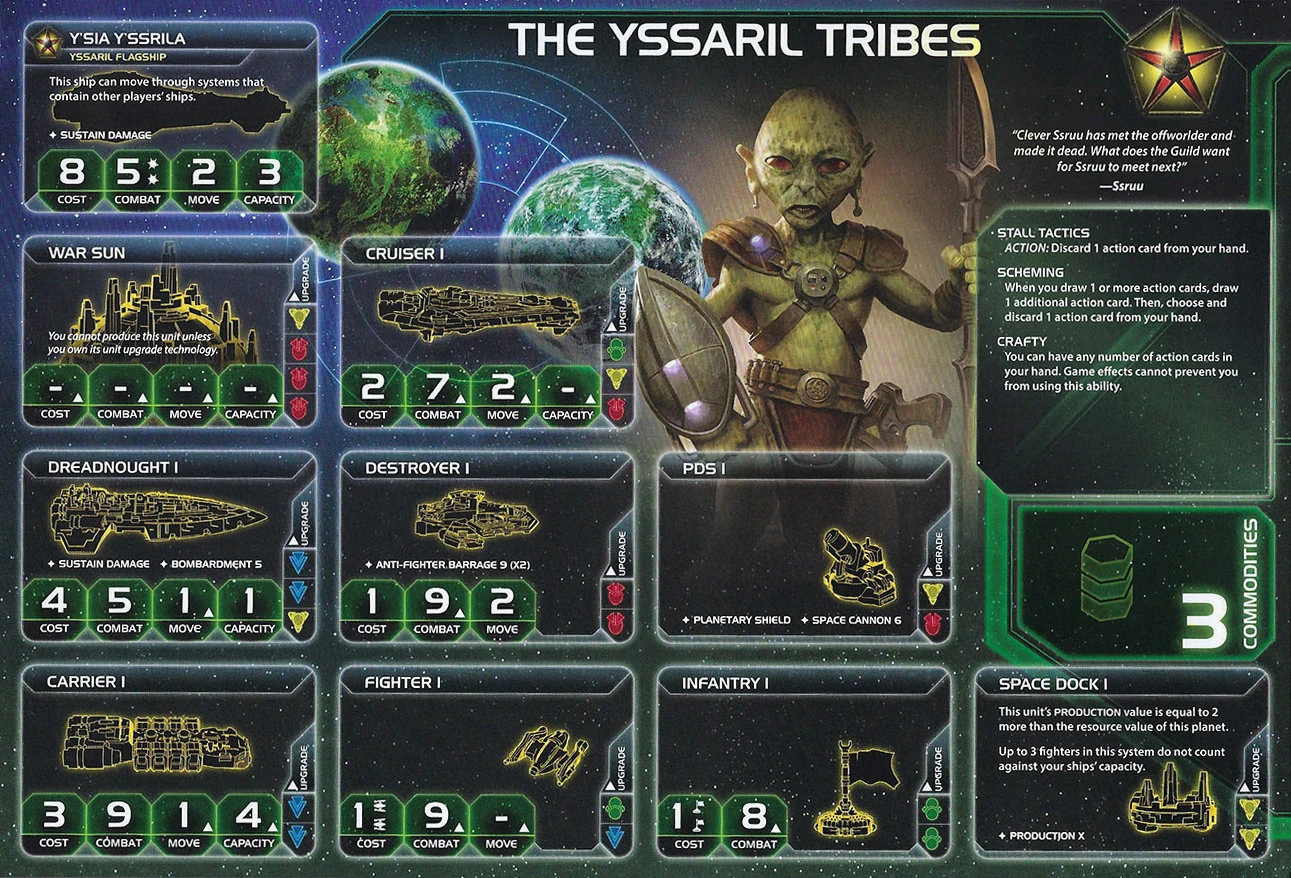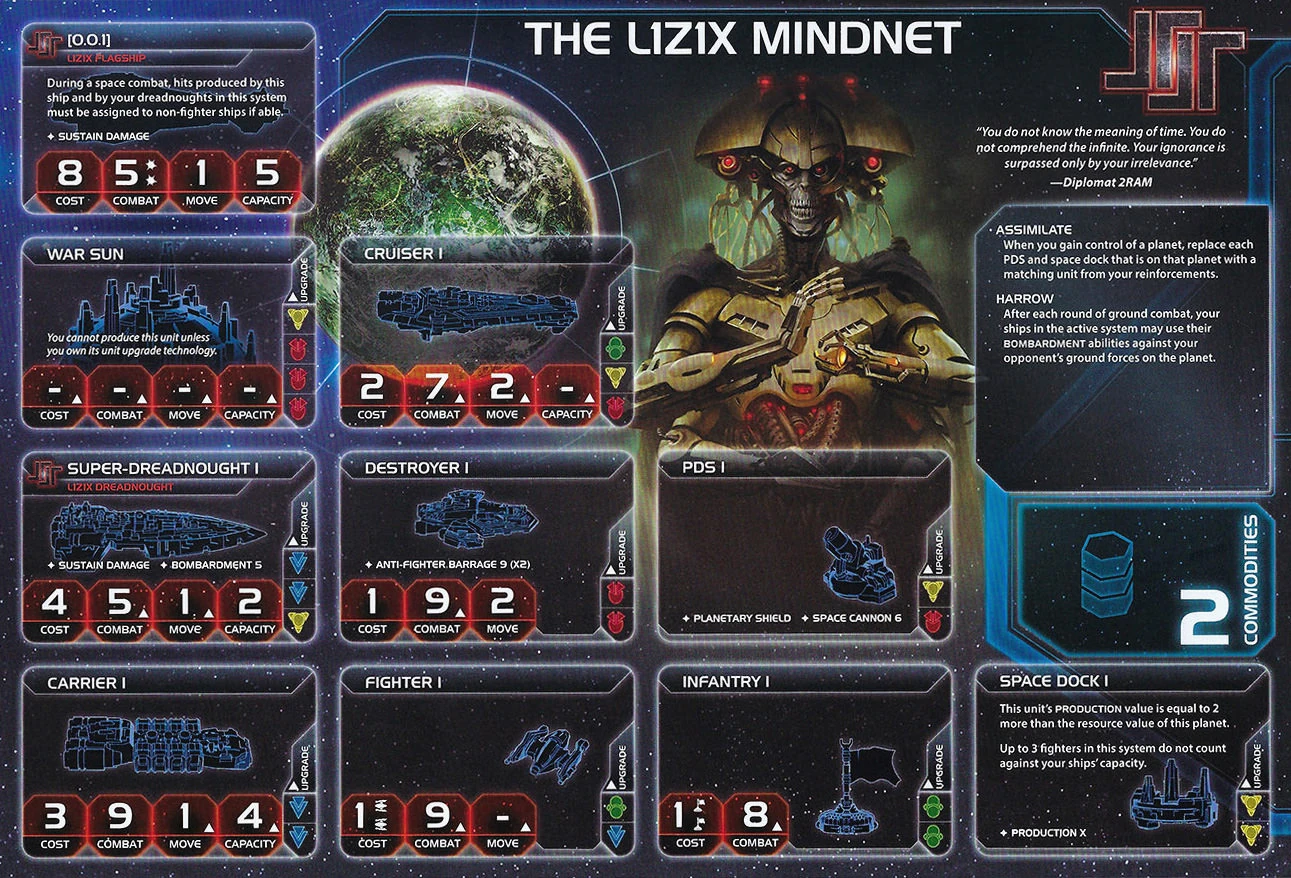 The Yssaril Tribes | Retillion | 2 | 3 | 3 | Neural Motivator | 2 | 5 | - | Transparasteel Plating | ||||