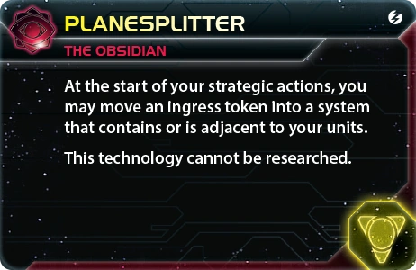 The Firmament | Cronos | 2 | 1 | 3 | Choose one green or yellow technology that has no pre-requisites. | - | 1 | 3 | - | Plane Splitter | |||