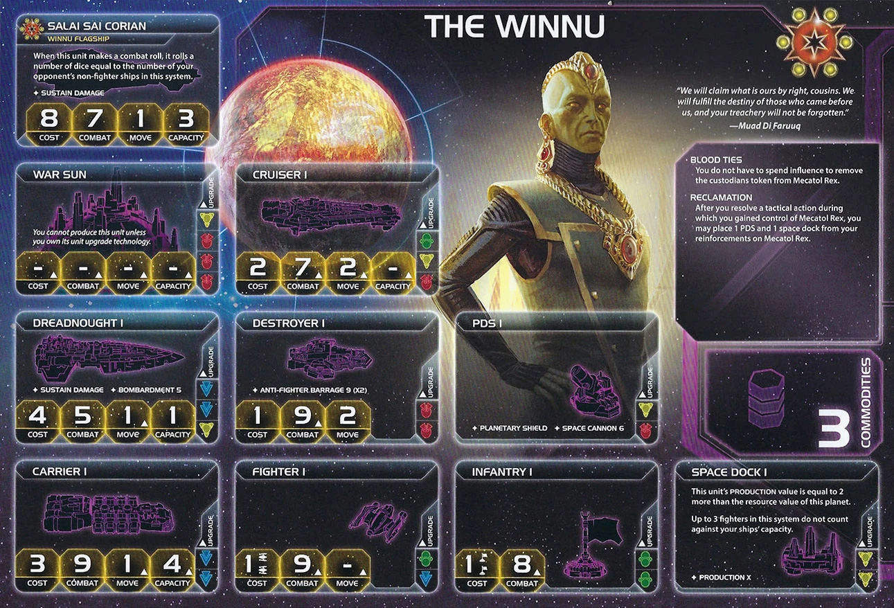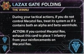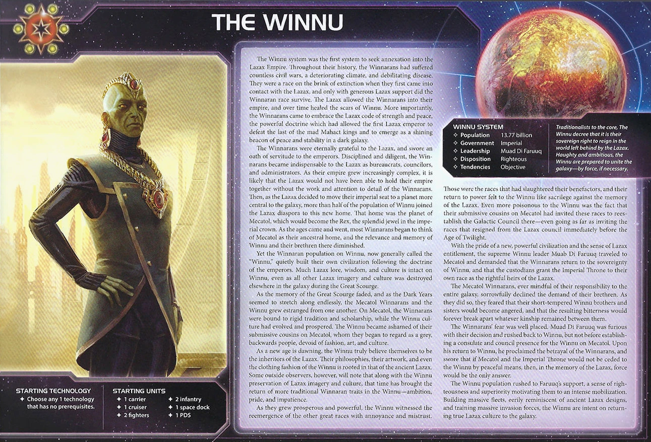 The Winnu | Winnu | 3 | 4 | 3 | Any 1 technology that has no prerequisites | - | 1 | 2 | - | Lazax Gate Folding | |||