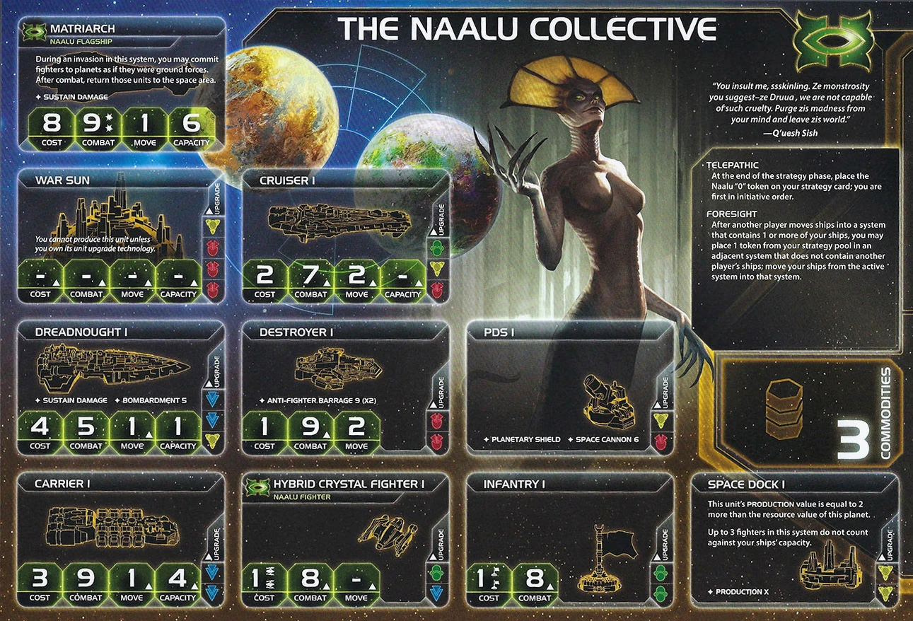 | The Naalu Collective | Druaa | 3 | 1 | 3 | Neural Motivator | 1 | 4 | Fighters | Neuroglaive | |||||