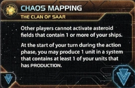 The Clan of Saar | Lisis II | 1 | 0 | 3 | Antimass Deflectors | 3 | 4 | Space Docks | Chaos Mapping | ||||