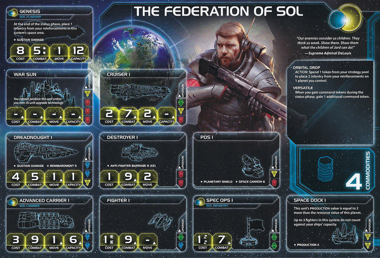 | The Federation of Sol | Jord | 4 | 2 | 4 | Neural Motivator | 2 | 5* | Infantry