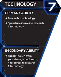- Spend 1 token from your strategy pool and 4 resources to research 1 technology.