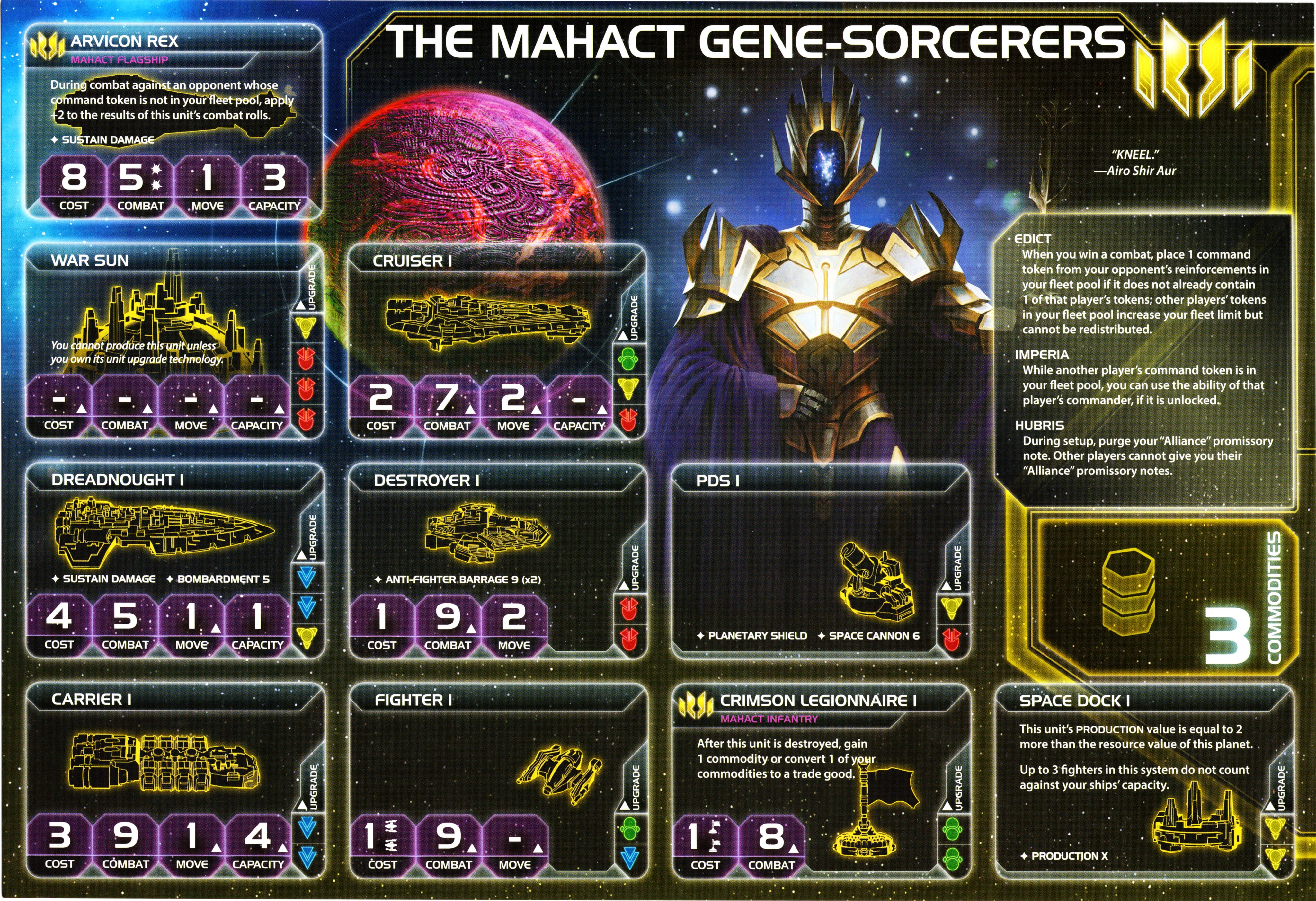 - EDICT: When you win a combat, place 1 command token from your opponent's reinforcements in your fleet pool if it does not already contain 1 of that player's tokens; other player's tokens in your fleet pool increase your fleet limit but cannot be redistributed.